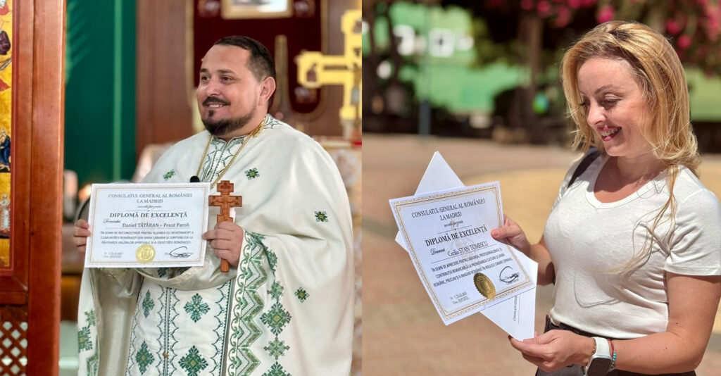 Parintele Daniel Tătăran din Gran Canaria și profesoara Cecilia Stan Tomescu premiați de consulul general